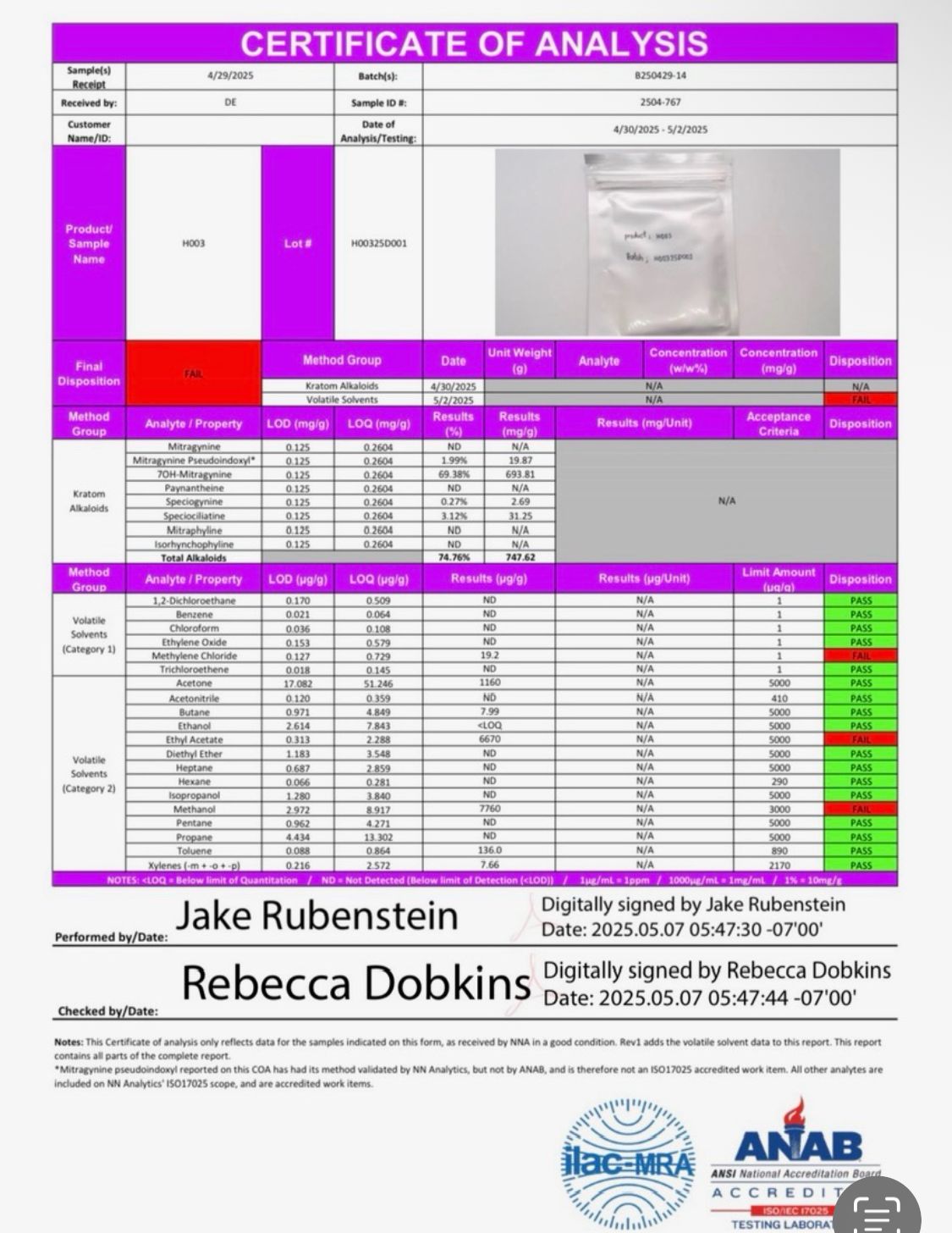 Each batch of 7OH Freebase 70% undergoes independent laboratory analysis to confirm identity, purity, and compliance with internal quality specifications.